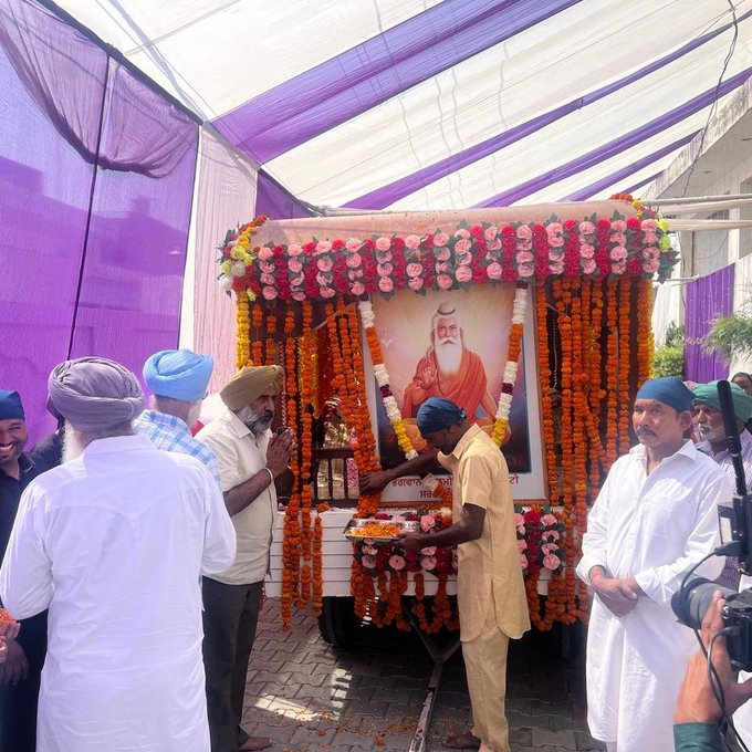 A special Shoba Yatra started from Rahim Pur (Nakodar) organised by Sant Pargan Nath Ji. It went through many villages and towns and ended in the Bhagwan Valmiki Ashram, Amritsar. Mrs Bholi Randhawa Ji with her team covered this Yatra. The Yatras in other towns were covered by the Kanshi TV’s staff stationed in Punjab. The atmosphere within all the Yatras was fine and enjoyable.