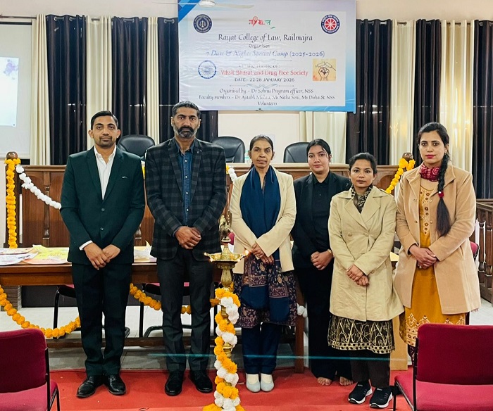 Nawanshahr (Asian independent) (Jatinderpal Singh kaler ) A seven dy NSS camp inaugurated at Rayat College of Law Railmajra, with the central theme “Viksit Bharat and Drug-Free Society.” The inaugural day witnessed enthusiastic participation from NSS volunteers, faculty members, and dignitaries, marking a strong beginning to the week-long programme dedicated to nation-building and social awareness. The programme commenced with the traditional lamp lighting, symbolizing the illumination of knowledge, service, and social responsibility. The dignitaries were warmly welcomed, setting a solemn and inspiring tone for the camp.Principal Dr. Monika Sharma delivered the welcome address, emphasizing the pivotal role of youth in realizing the vision of a Viksit Bharat through discipline, service, and ethical conduct.The inaugural session was further enriched by the address of the Chief Guest, Prof. Satpal Singh, who elaborated on the significance of NSS in shaping socially conscious citizens. He underlined that a developed India cannot be achieved without eradicating social evils like drug addiction and called upon students to spread awareness and lead by example in their communities. Dr Sohnu Saini coordinator presented an overview of the previous year’s NSS activities , showcasing the unit’s contributions in areas such as community service, environmental protection, and social outreach.A poster making competition on ‘ Say no to drugs ‘was also conducted. Dr. Sohnu, who expressed gratitude to the dignitaries, faculty members, volunteers, and organizers.a Tree Plantation Drive was organized within the campus premises to make campus environment green , NSS volunteers actively participated in an anti-drug awareness rally, carrying placards and raising slogans promoting the message “Say No to Drugs.” The rally aimed to sensitize the public about the harmful effects of drug abuse and the importance of leading a healthy, addiction-free life. Additionally, a donation drive under “Project Sakhi 2.0” was organized, encouraging students and staff to contribute essential items for social welfare. The initiative reflected the spirit of empathy and collective responsibility promoted by the NSS.