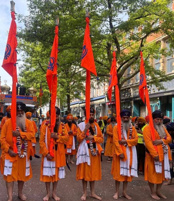 One of the special guests at the Nagar Kirtan High Sherrif of Leicestershire Meldin Thomas QPM, a retired Leicestershire police officer who received the Queen’s Police Medal in 2021. This role has over 1000 years of history. The High Sheriff of Leicestershire said “I am very happy to be invited to the Nagar Kirtan. Despite living in Leicester for 50 years it was my first Nagar Kirtan, it was a fantastic and amazing day. It gave me the chance to go to the East Park Road Gurdwara, an area where my and most people who have settled in Leicester came to live first. The prayers at the beginning were very peaceful and humbling. It was great to see the Sikh community come together. Sikh community is a symbol of peace who made many sacrifices in World Wars.”